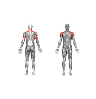 2. Turn both of your wrists outward until your palms face away from you. At the same time, fully extend your arms overhead. Hold for one second. Return to starting position
