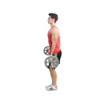 front of the thighs. Bend your elbows to curl the bar on the shoulder.