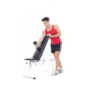 1. Standing up straight , hold a dumbbell with a handle of a hammer. Reposez- arm on top of the inclined bench.