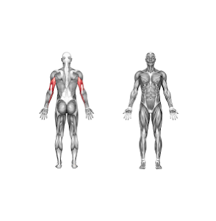 4. Squeeze your triceps, then bend your elbows to lower the weights back down so that they are along your sides once again.